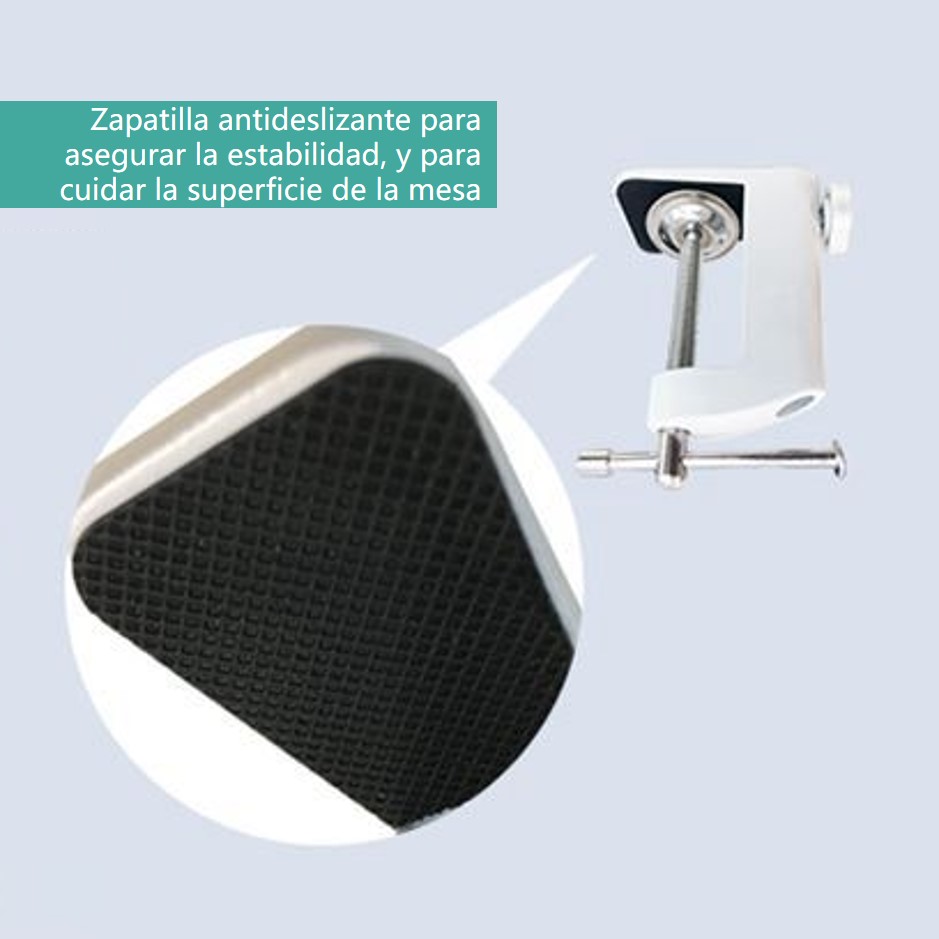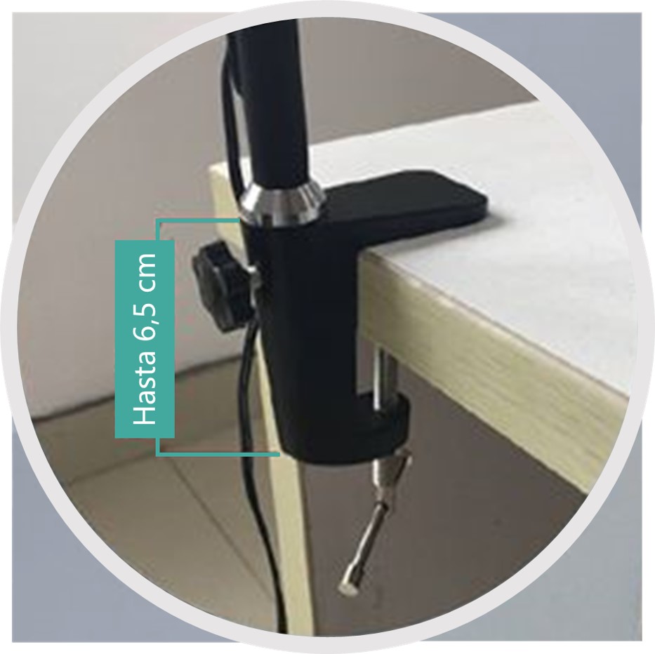 Diseñado con una longitud perfecta para ponerla a un lado de la mesa, sin que te reste espacio de trabajo, y aún así alcance perfectamente hasta donde necesites.