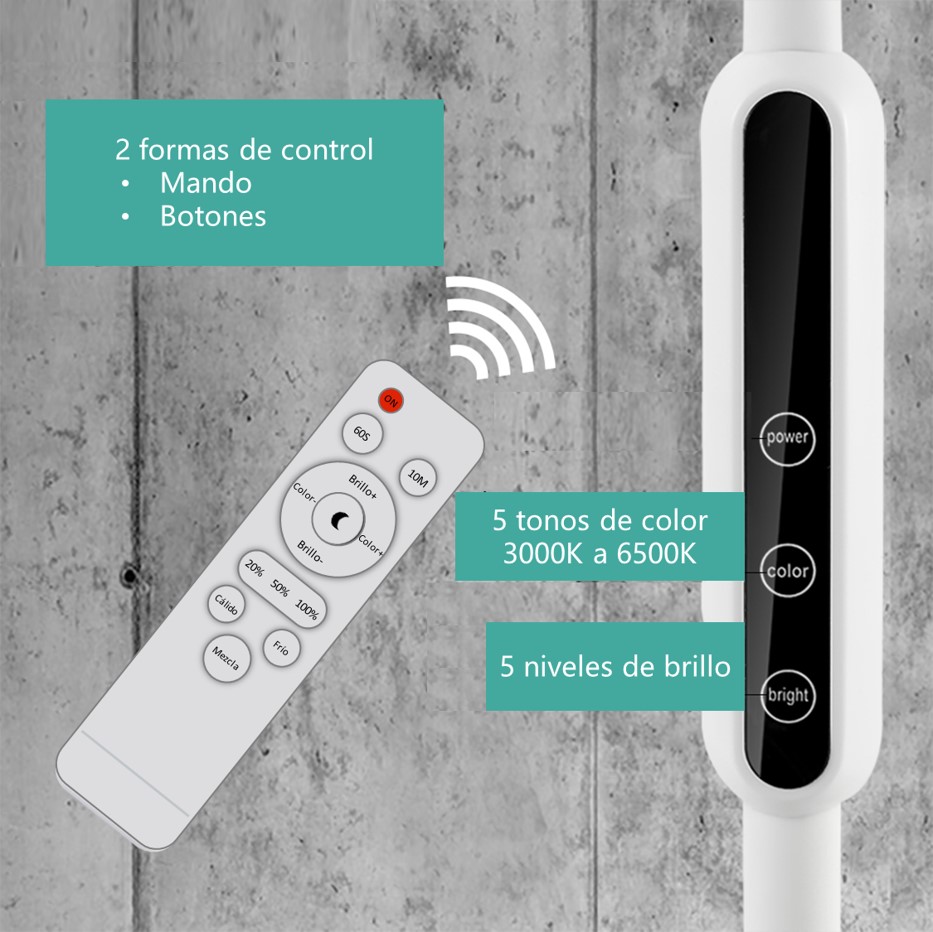 Con función memoria: retiene la última combinación de brillo y color usada.